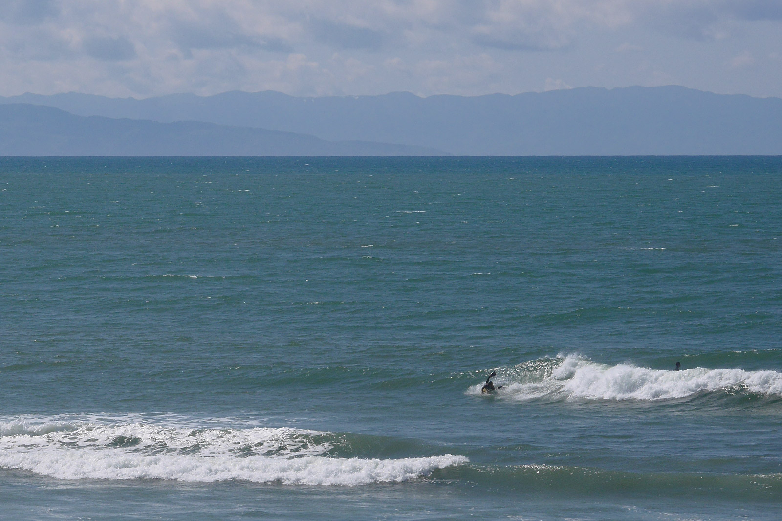 テトラ脇で入ろうと思ったけど、がら空きのテトラ間にも小ぶりながらいい形のセットが時々入っていたのでそっちへ入水。