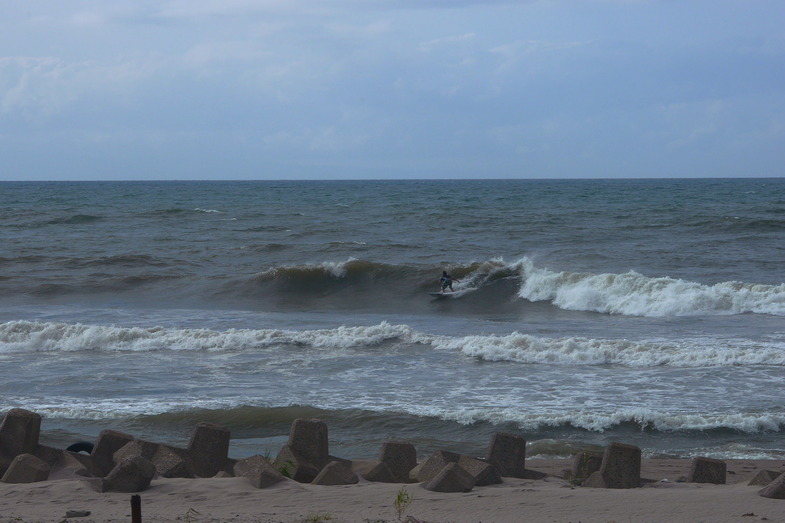 夕方のホームは西うねりがしつこく残ってあんまりいい波じゃなかったけど、ゆるめのテトラ脇でなんとか。サイズダウン早そうな感じでした。